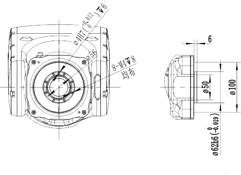 · 6軸的中孔內徑為46mm,可滿足水冷槍、波紋管槍的安裝要求。